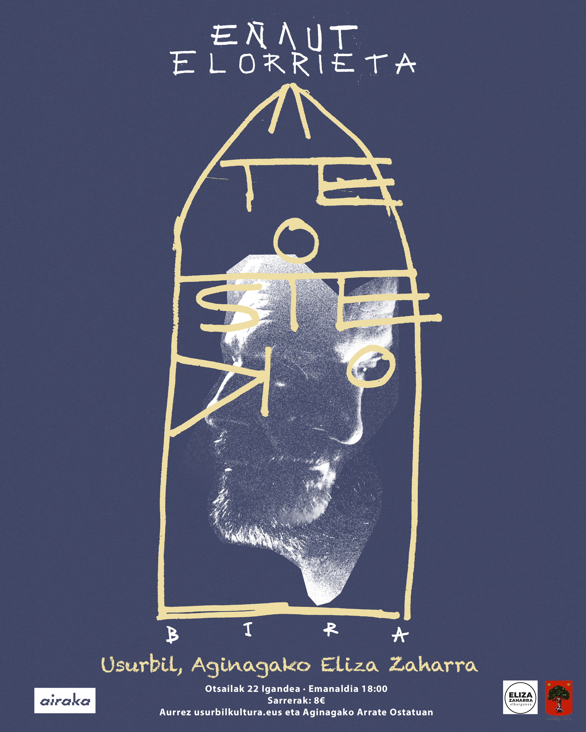 Elorrietak, harriari ahotsa ateraz, beste garai batzuetako kantuen memoria aktibatuz. Soinu eta argi-ekipo soil eta zainduarekin, ahots eta gitarra hutsez eskainiko du Eñaut Elorrietak bere ibilbide osoko kanten aukeraketa zabala. Kontzertu zuzenak eta biluziak izango dira, herri-kanturen eta esperimentazioaren artean, ahotsaren posibilitateetan arakatuko dutenak.